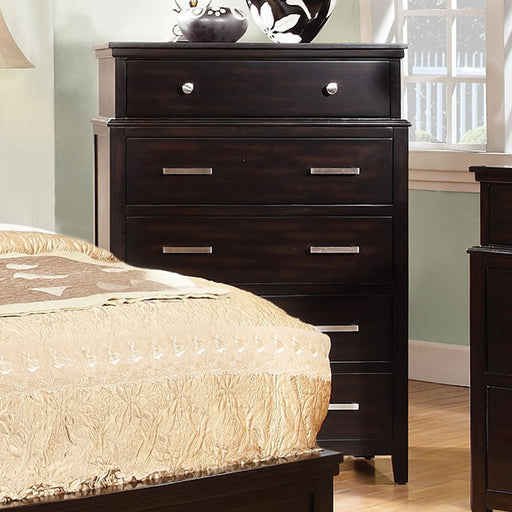 FOA EastThis compact five-drawer chest is perfect for those with smaller living spaces. Available in white, red, or espresso finish.